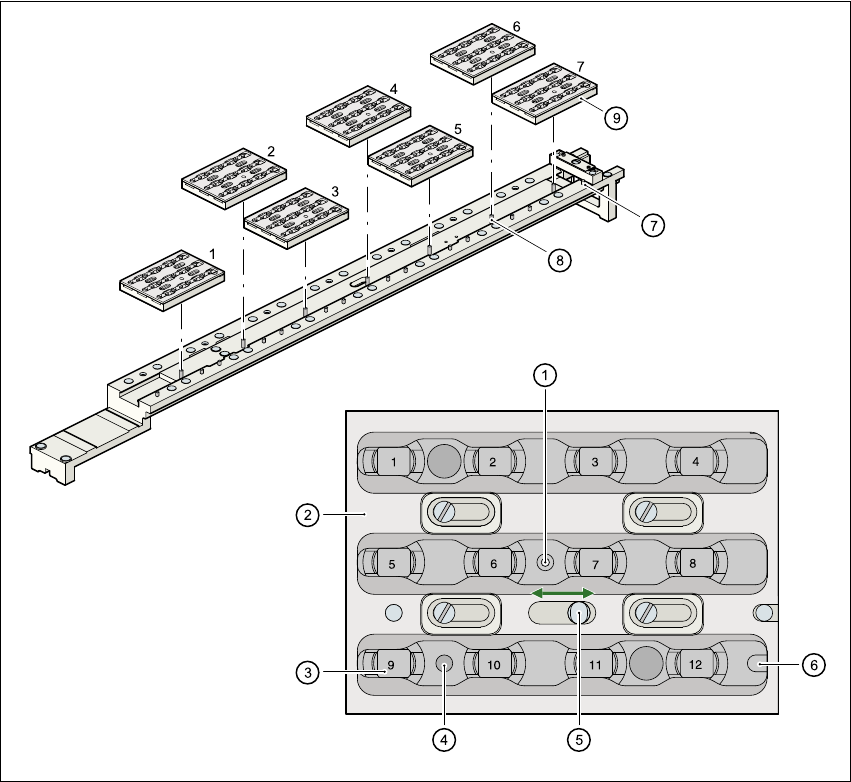 Fig. 11.1 - 2 Cargador y posiciones de pipetas