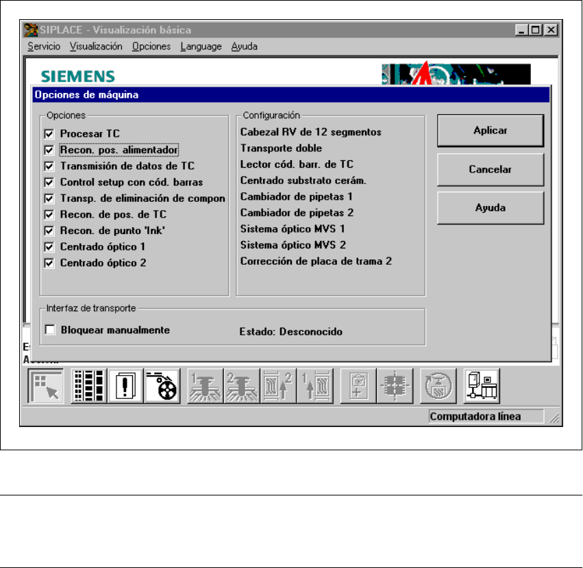putadora de la línea, se visualiza en las opciones de máquina.