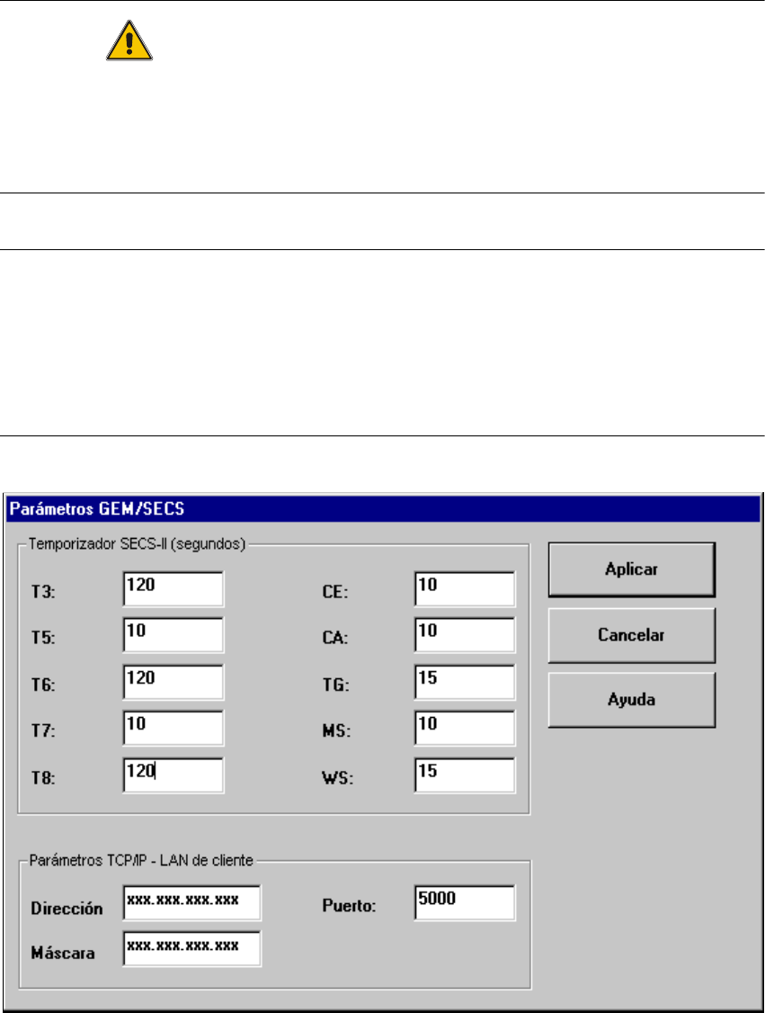 Fig. 12.2 - 3 Ventana "Parámetros GEM/SECS"