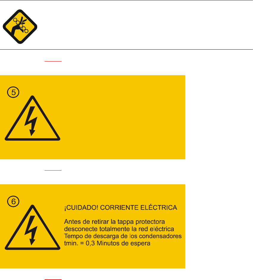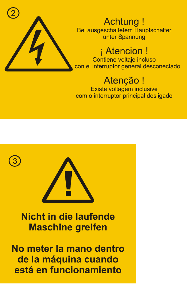 Fig. 2.1 - 1 Avisos de advertencia en la máquina básica - Parte 1