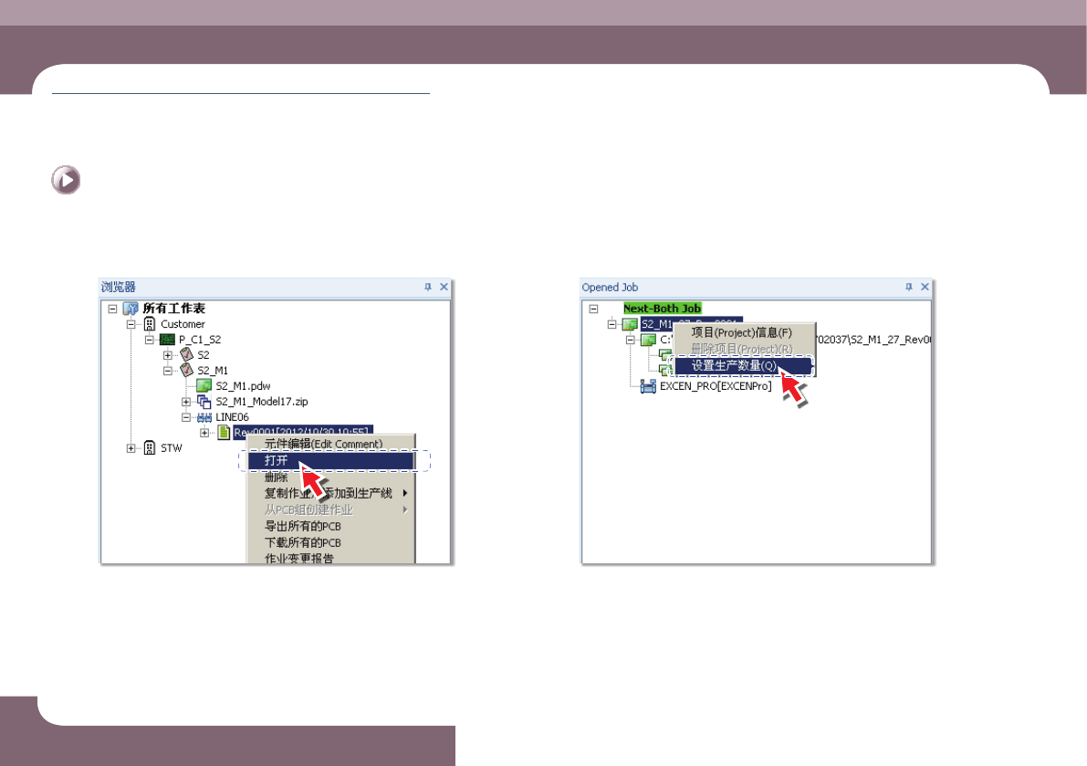 Step 4. 利 用 鼠 标 右 键 单 击 已 经 打 开 的 作 业 的 项 目 后 ,选 择 "生产数量"。