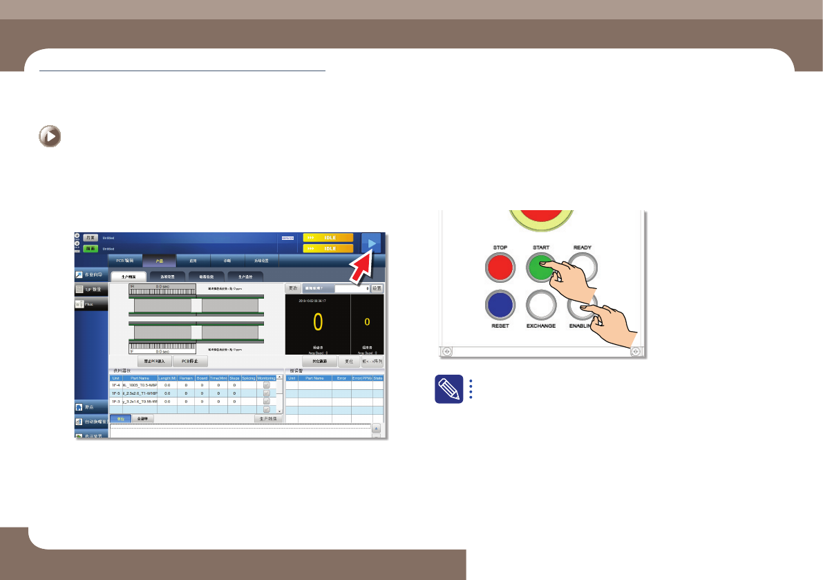 Step 2. 按'START'按钮恢复生产