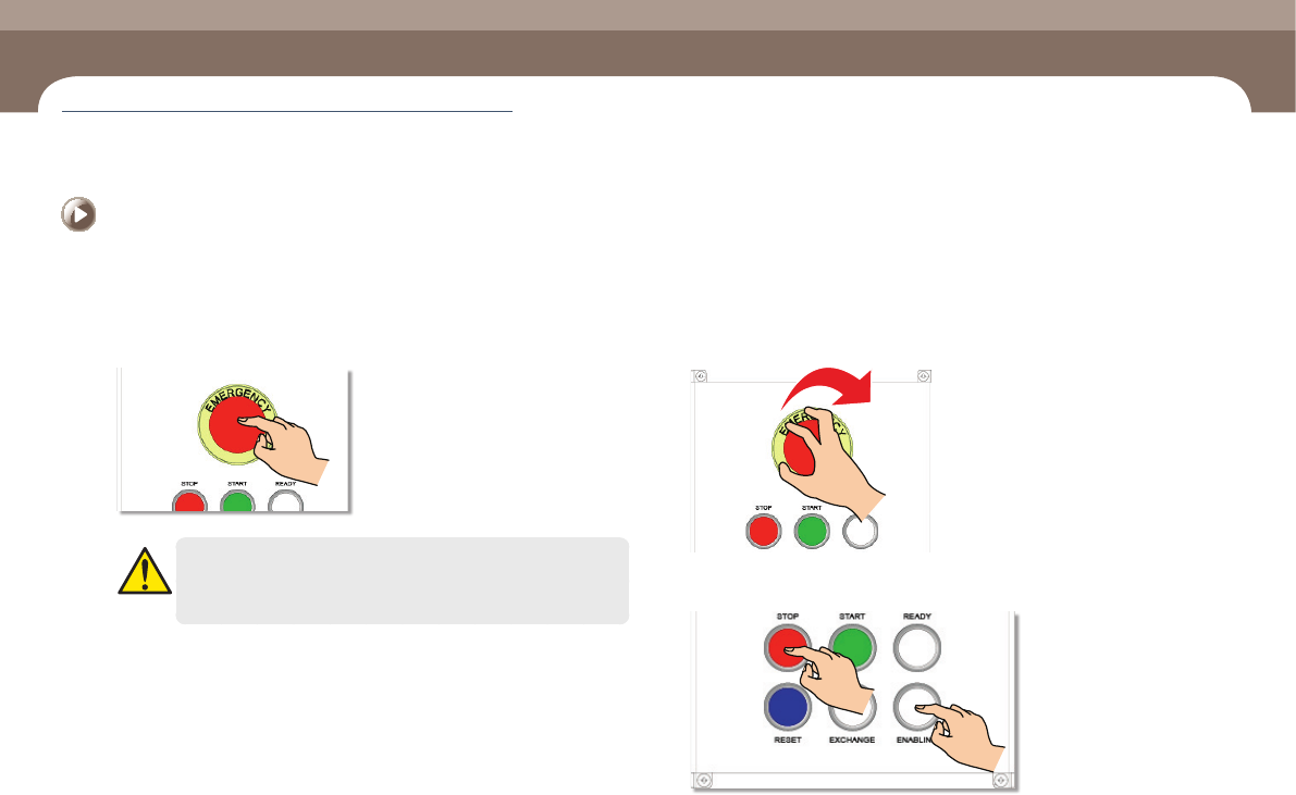 务必排除紧急停止原因后重新启动设备