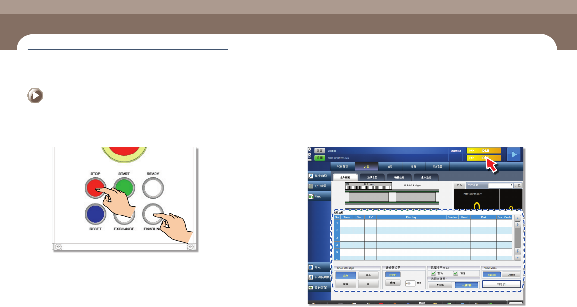 生产过程中的对应措施 第 4 章 C utting-edge Modular Mounter HM520 Ope rati on Handbook 4-1 2 本 Chapter 主要内容为在生产中检查错误,并采取措施时的设备暂停方法( Continue / Start 模式)、紧急停止方法( 人为/系统紧急停止)、紧急停止后重启系统的方法等。 紧急 停 止 > 紧急 停 止 (Emerge ncy S to p) : 人为 的 …