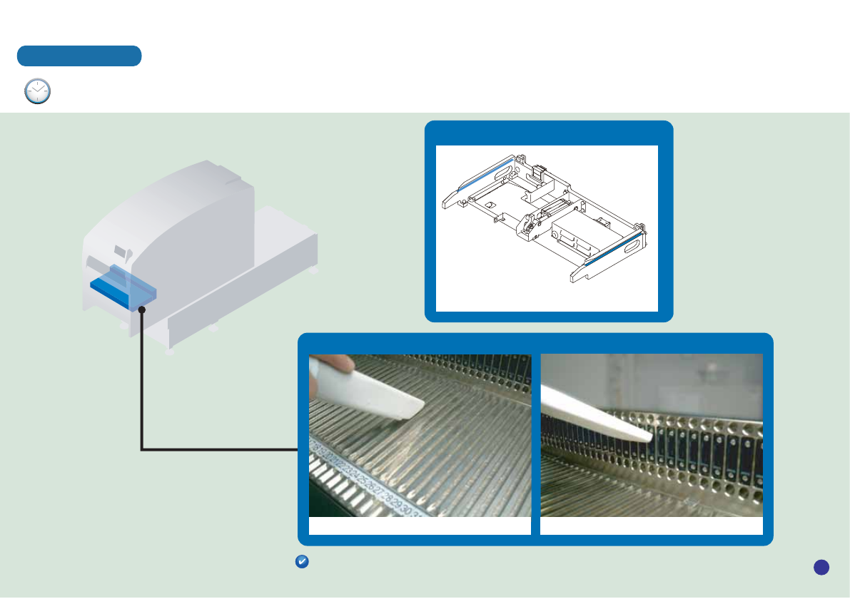每 160 小时 (每 1 周) 清扫吸嘴置放台 吸嘴更换器 78 关于吸嘴置放台的拆卸方法,请参照《 NXTII 机械手册》 「 5. 基本操作」-「吸嘴置放台的拆除/安装」。 首先、从吸嘴更换器上取下吸嘴置放台。 1. 取下吸嘴置放台。 2. 取出吸嘴。 清扫吸嘴置放台 用吸尘器吸取吸嘴收存格内的异物