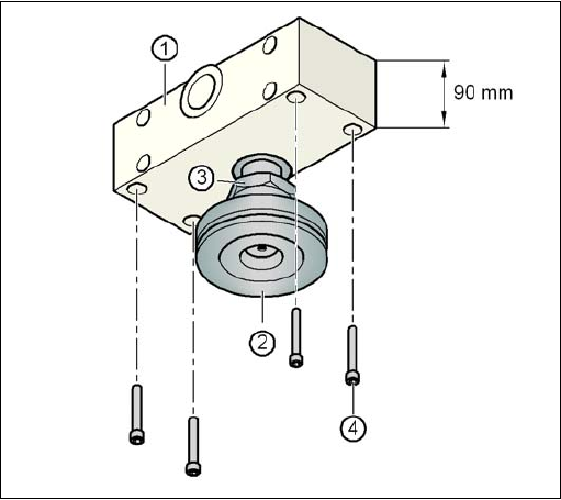 Fasten each of the two spacers with four hexagon socket-head screws M12x80 (see item 4