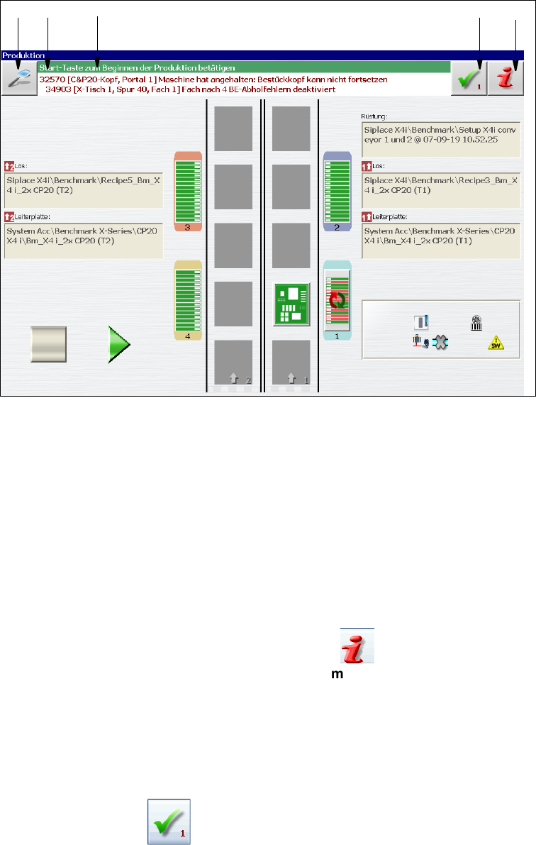 Fig. 5.6 - 1 "Production" view with alert message (example of SIPLACE X4i shown)