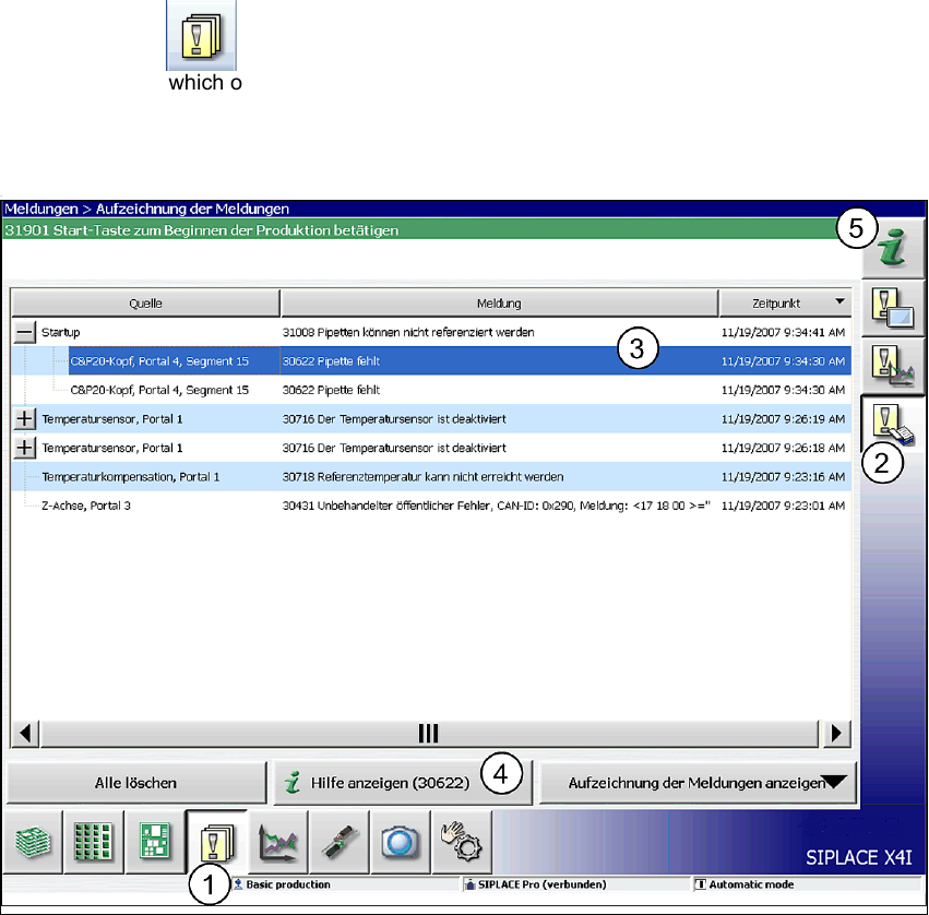 Fig. 5.6 - 2 Example:alert list (example of SIPLACE X4i shown)