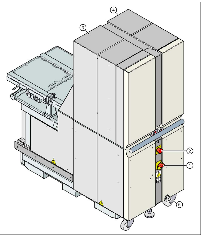 User manual SIPLACE X-Series 6 Station extensions From software version 708.1 Version 05/2015 6.4 Matr ix tray changer 367 6.4.4.2 Controls 6 Fig. 6.4 - 2 Matrix tray changer , back view (1) Main switch (2) EMERGENCY STO…