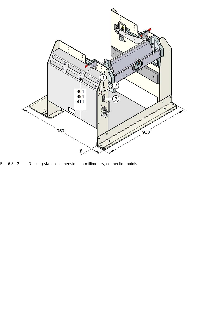 Fig. 6.8 - 2 Docking station - dimensions in millimeters, connection points
