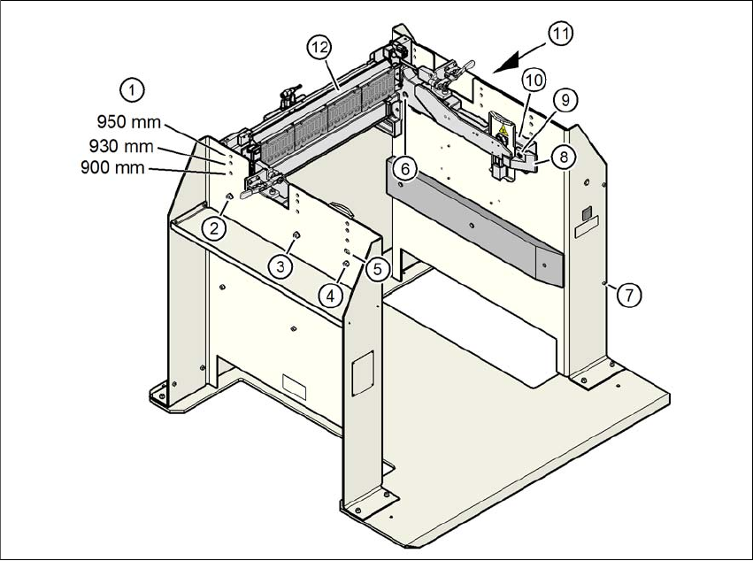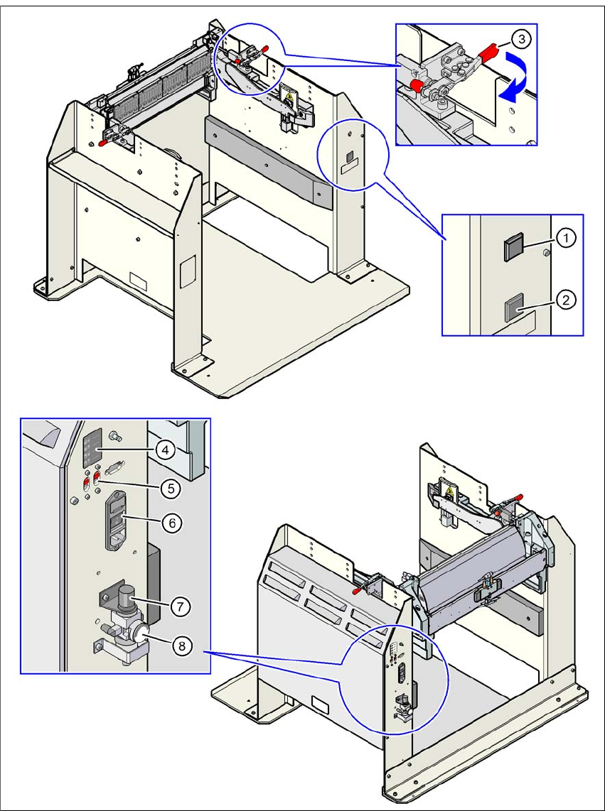 (3) Clamping lever for fastening the changeover table - lever in position "closed"