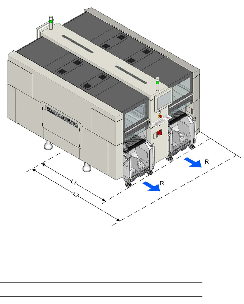 The maneuvering distances R for the component trolley of the SIPLACE X-Series machines are