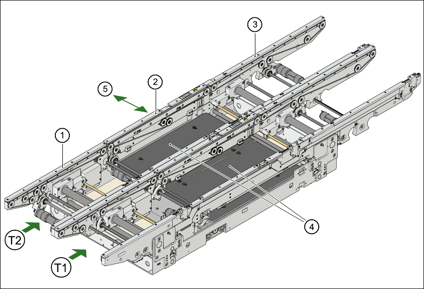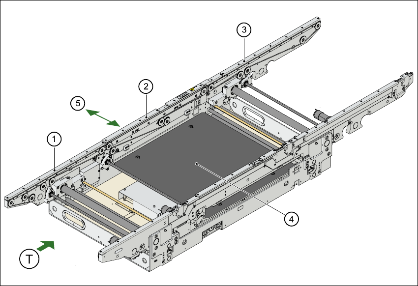 Margem de transporte fixa Direita (standard), esquerda (opção)