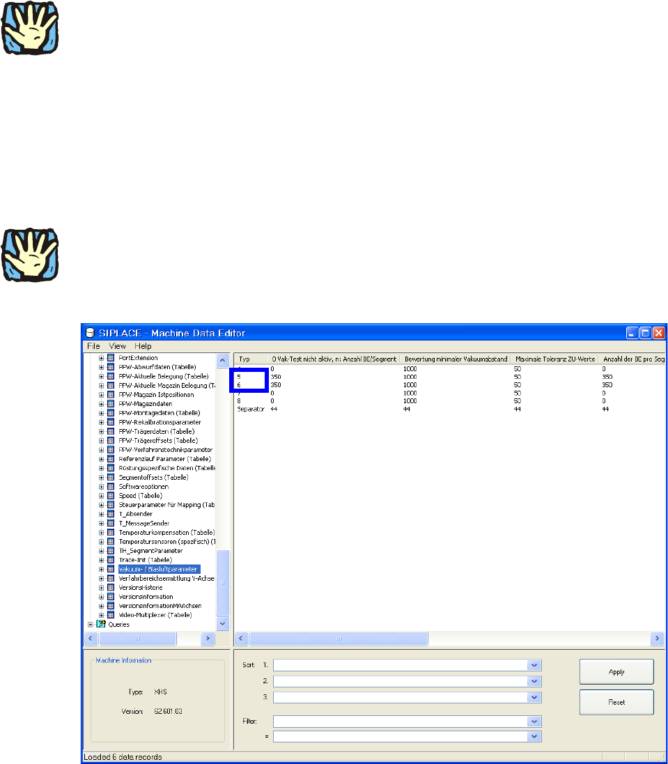 Die Änderung in der Maschinendatenbank darf nur vom SIPLACE Service durchgeführt werden. 1