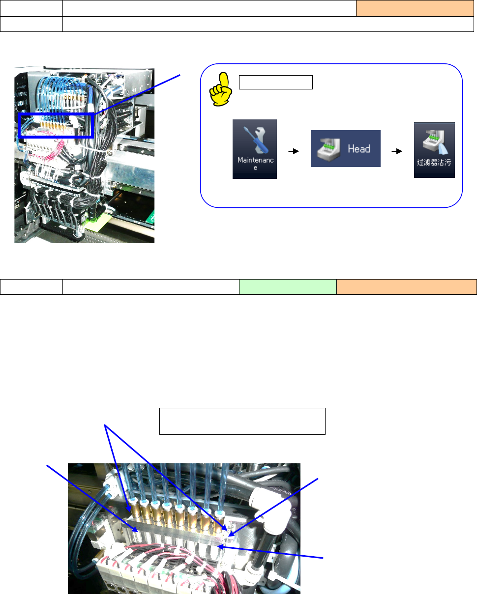 1) 请目检确认 Head 单元正面部位过滤器箱内的「空气过滤器①」没有脏污。