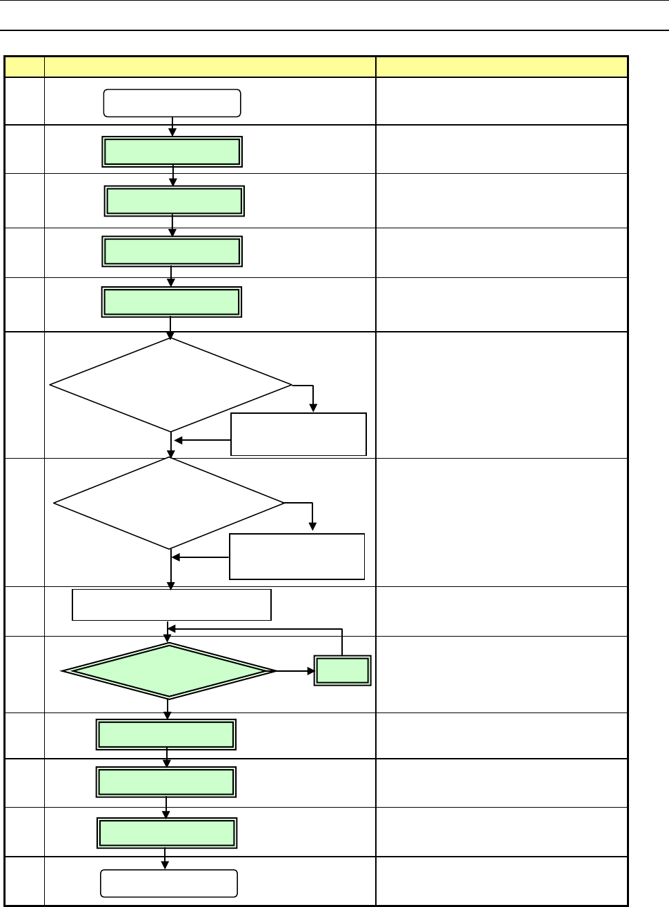 操作手册 2-1 第 2 章 生产 2- 1 流 程图 本章对 No2 ~ No5 、 No9 ~ No12 加以说明。 No. 流程图 备注 1 确认 AT C 周围的状况, 进行日常检查。 2 确认主气压( 0.5MPa ) 3 返回原点前,确认装置内部是否有异 物 等。 4 节假日结束后以及在寒冷地区, 必须预 热 ( 10 分钟左右 ) 。 5 6 在日常检查或安装基板 、 清扫吸嘴 、 机器的初始设定 状况有变动时,请重 新设…