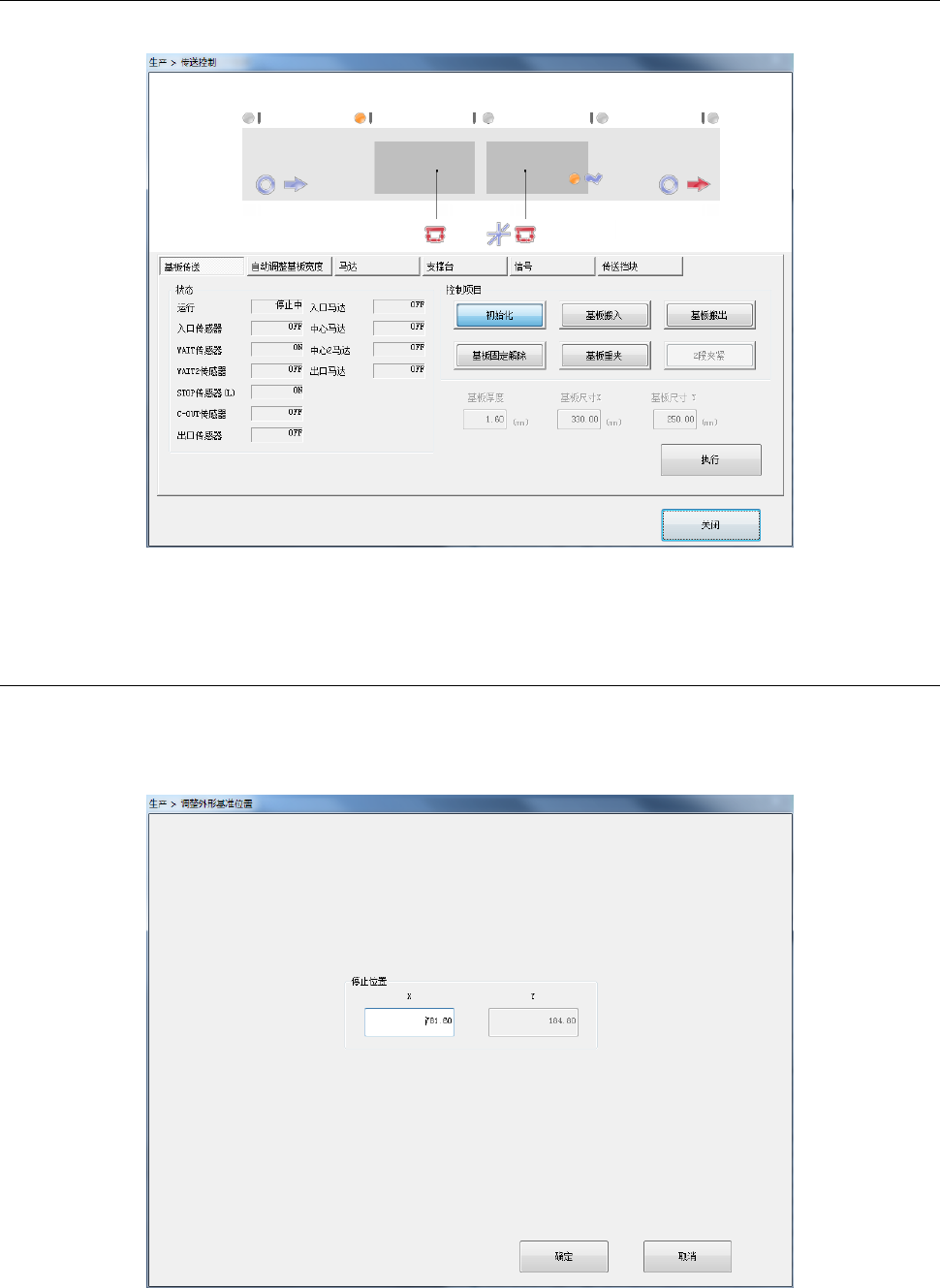 按下执行按钮,执行[基板搬入]、[基板搬出]、[释放基板] 、[重夹]动作。