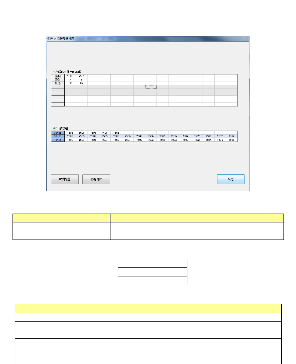 上层显示当前ATC上的吸嘴配置。如果配置了与通过优化的吸嘴布局不同的吸嘴,则用红色显示。