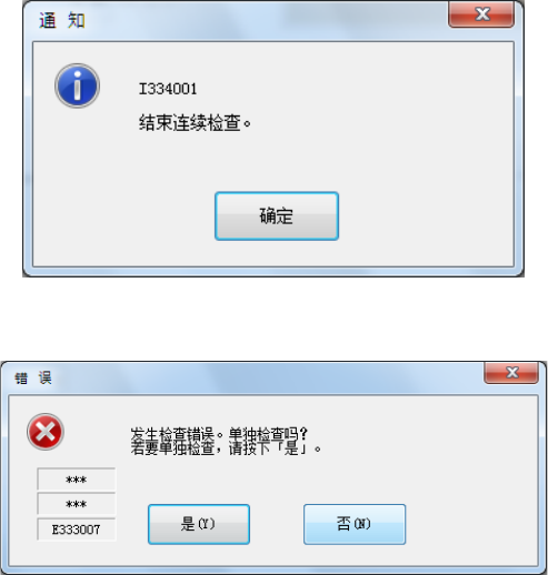 如连续检查中发生错误,则显示以下提示信息。