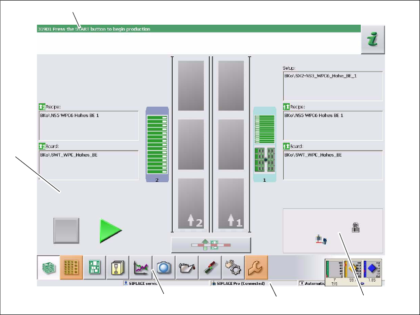 Joon. 5.5 - 1 Kasutajaliidese komponendid vaates "Tootmine" (SIPLACE SX näitel)