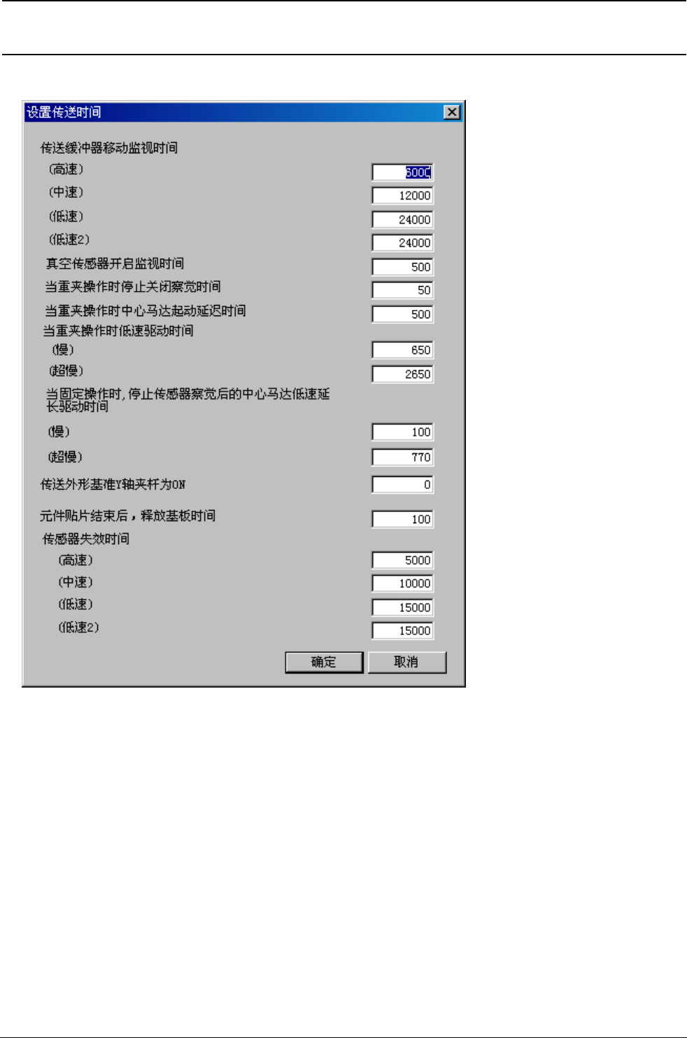 *(1)传送马达的高速根据参数的设置切换到 400mm/s 或 300mm/s。