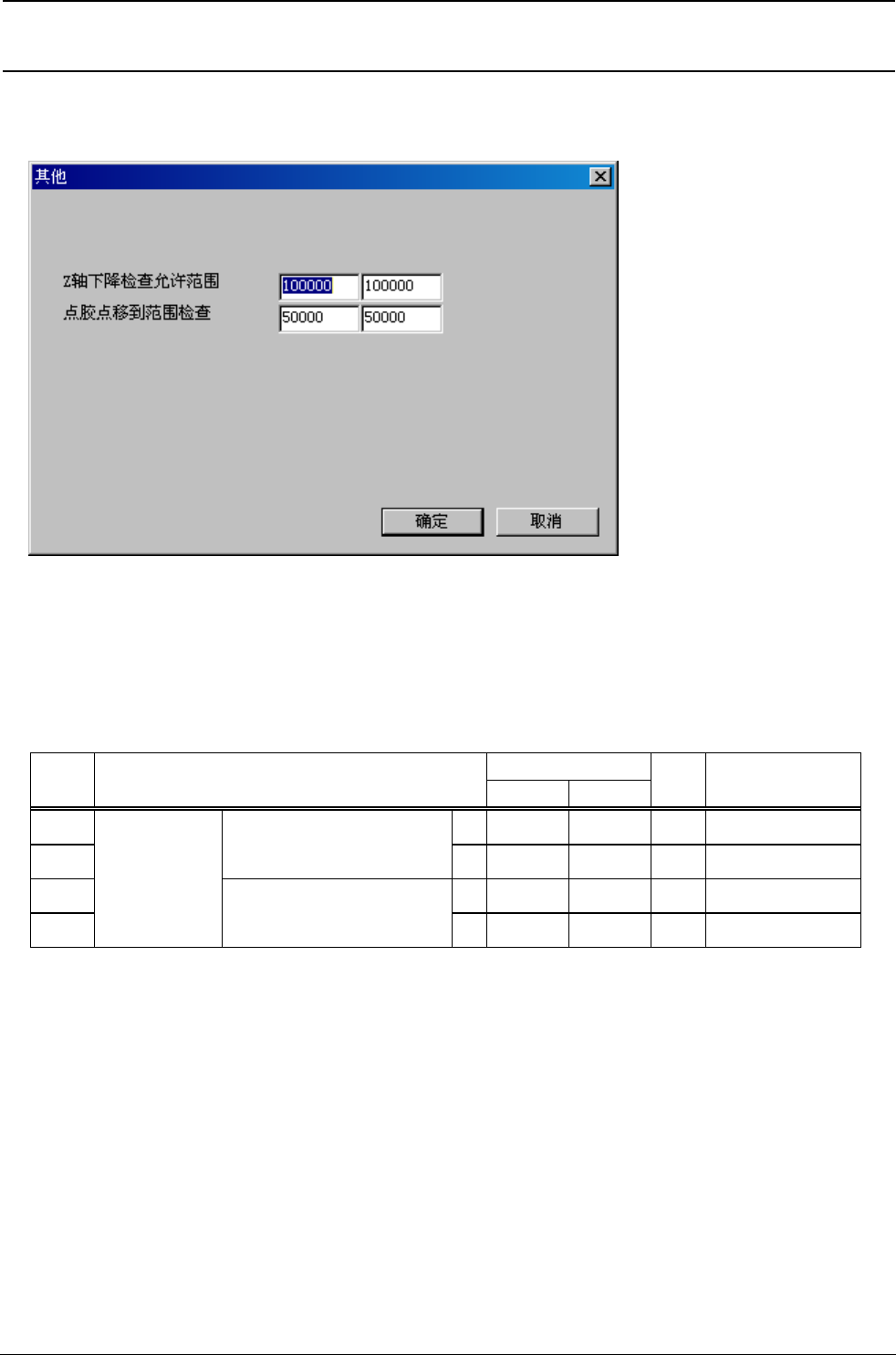 Z 轴下降检查允许范围值