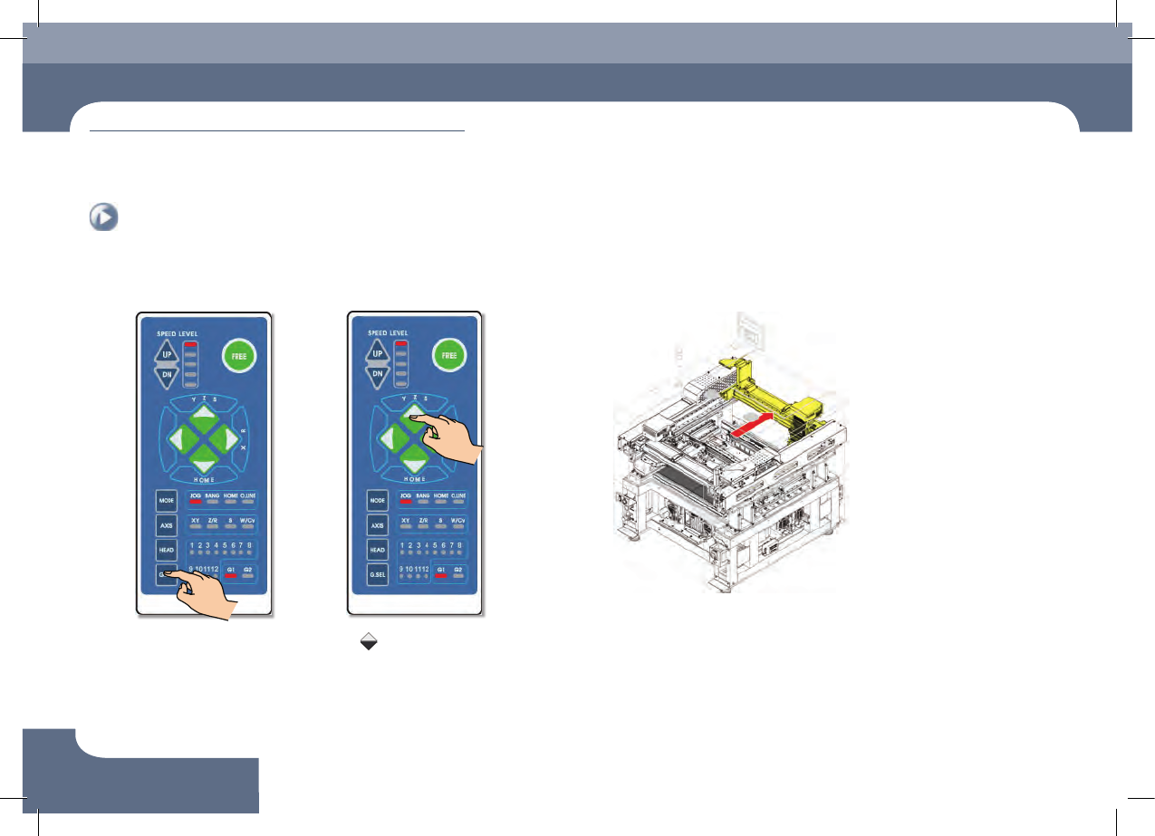 Chap ter 1 本部分介绍设备维护作业环境、作业工具、维修项目等。 维护条件 Adv ance d Fl ex ib le P la cer DE CAN F2 M ai nt en an ce H a nd bo o k 1-8 维护前共同执行程序 维护条件 3. 按 ' G . S E L' 按钮 按 'G1' 按钮 5. Rear X Frame 后面移动 4. 按 操 作键 按 &a…