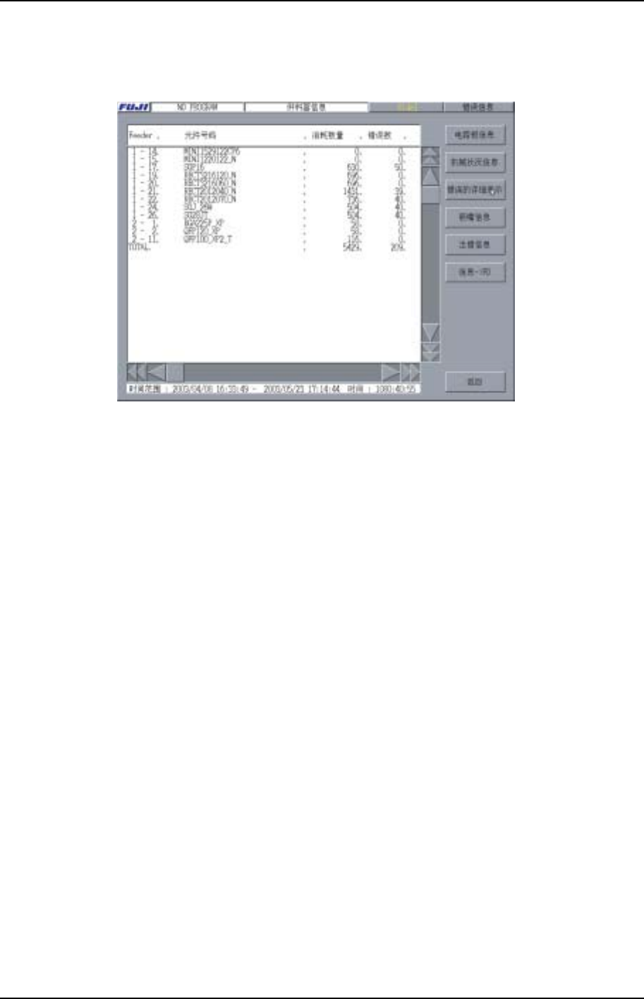 显示满足条件的记录数据或是选择的记录文件中注册的供料器。如果选择的记录文件是