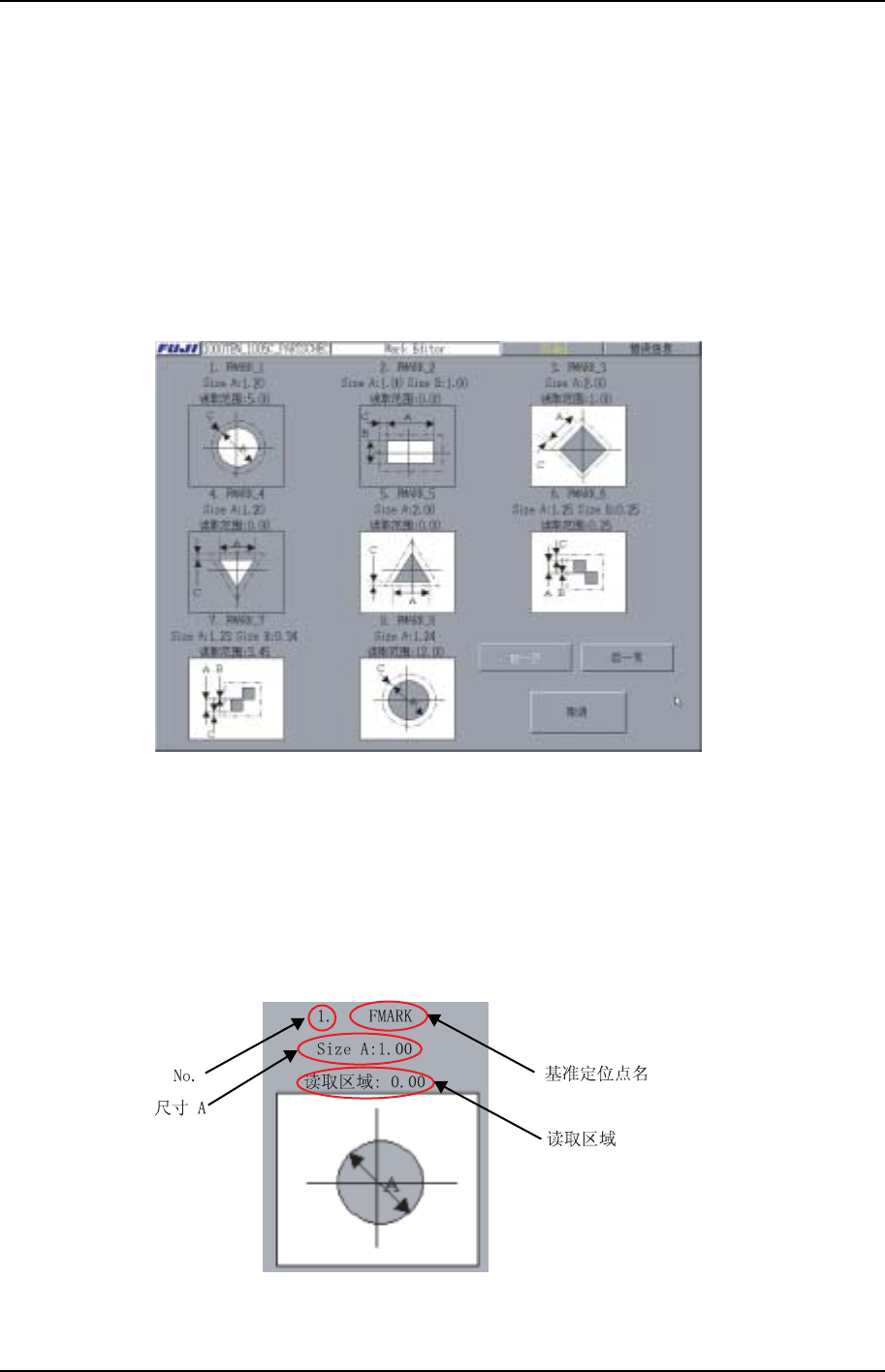 第 3 部 第 3 章 编辑器 E d i t i o n 1 . 0 3 - 3 - 1 9 X P - 2 4 2 E 系统手册 · [ 定位点文件读入 ] 键 读入 被 保存的电路板 ID 数据。 · [ 定位点文件保存 ] 键 保存当前正在显示的电路板 ID 数据。 3.5.1 基准电位点一 览表 画面 本 画面显示 现 在正在编辑的基准电位点一 览表 画面。 XP2S2229S · 显示编辑中的定位点数据 第 1 行显示编号和…