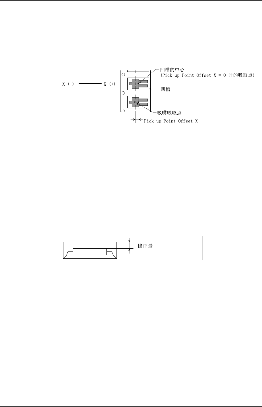 不想从指定料站的 X 方向的中心处吸取供料器供应的元件时用此设定。设定修正量时