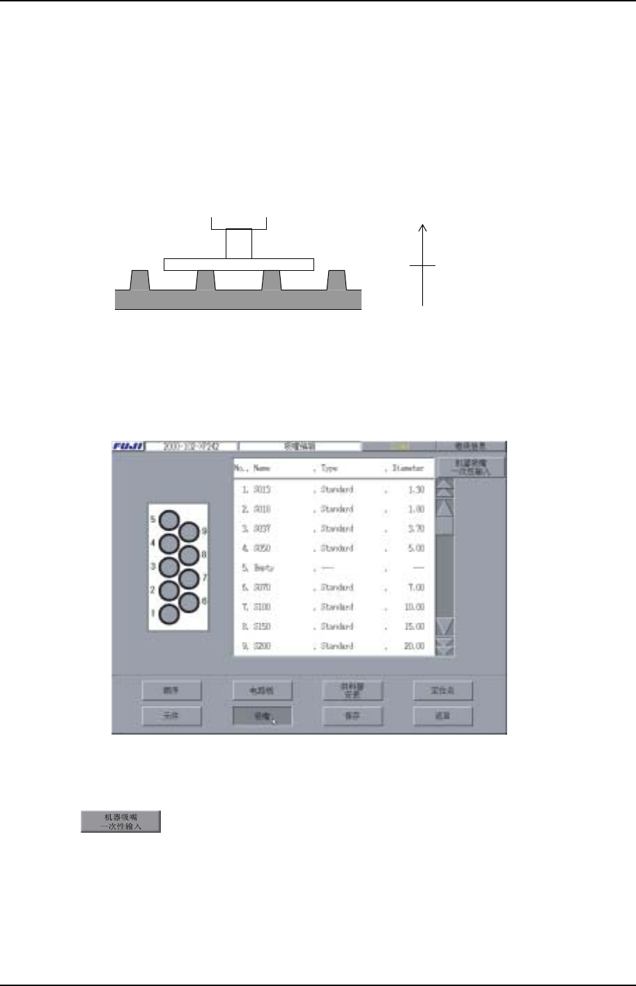 一次性读入机器上的吸嘴信息。当 一 次 性输入时,请确认生产程序中