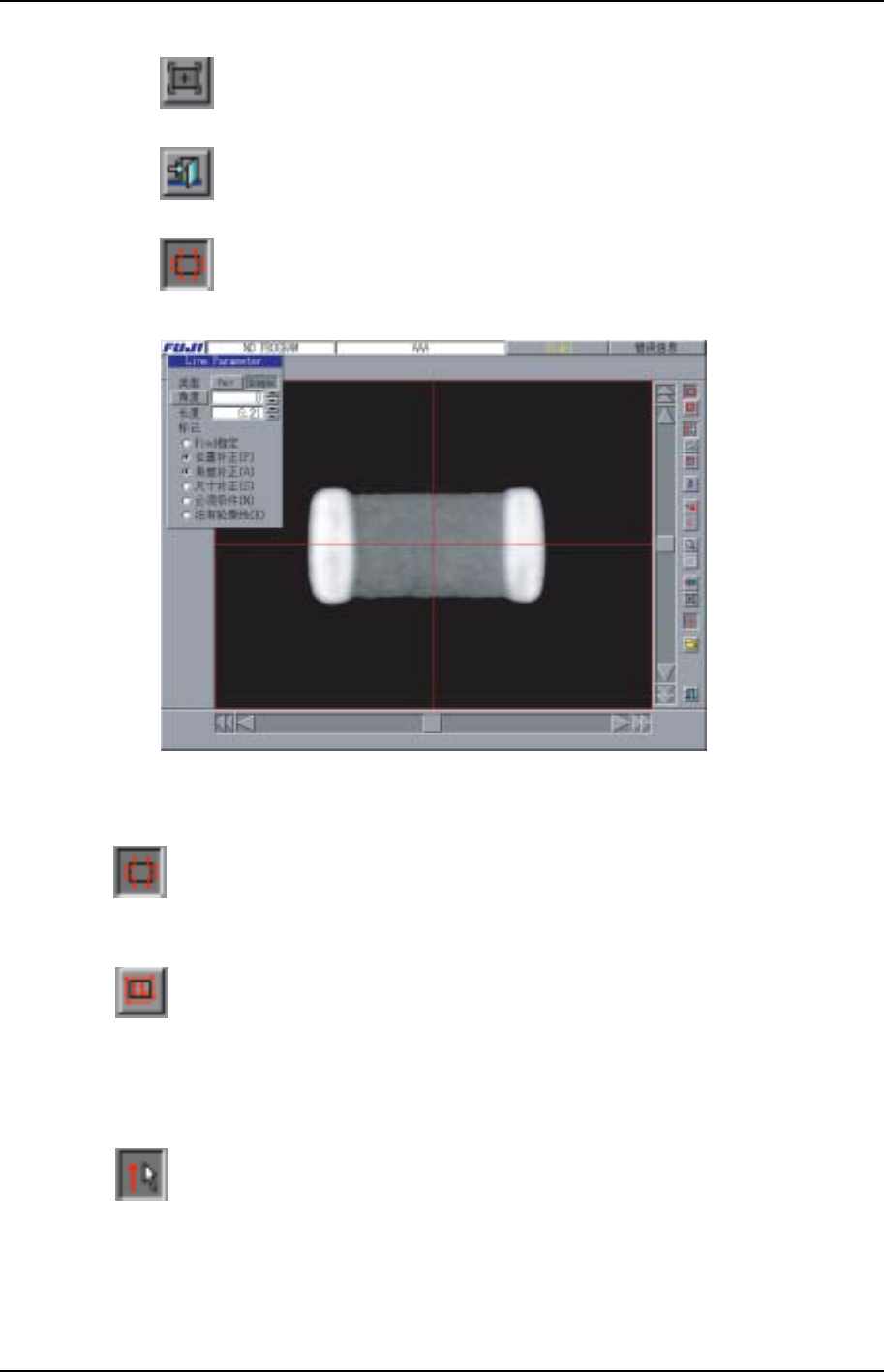 第 3 章 从现有元件数据中创建模板 第 4 部 XP-242E 系统手册 4-3-8 Edition 1.0 新 输 入 单击要画出 查找线 的 地方 后,可以 输 入在 查找线 参数中设定值的 查找线 。 查找 线 参数的角 度按键处于 ON 的 状态 时,相对于单击 的 地方 的 轮廓 创建出 垂直 的 查找线 。在单击的 地方 没有 轮廓 时,无 法输 入 查找线 。被新 输 入的 查找线 变 为激活 的 查找线 。 查找线 的…