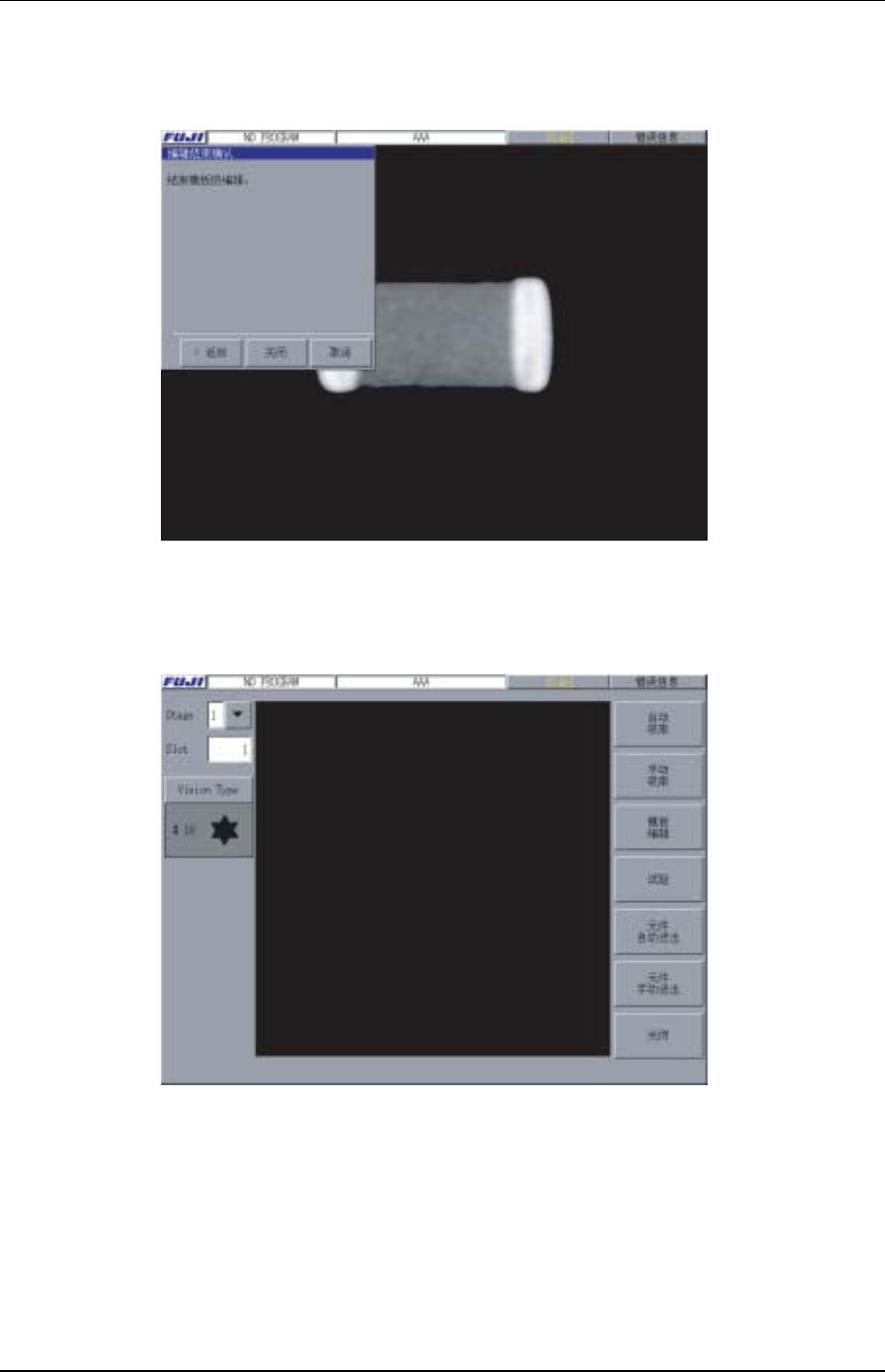 第 4 部第 3 章 从现有元件数据中创建模板 Edition 1.0 4-3-15 XP-242E 系统手册 23. 选择 [ 影像处理 ] 后,执行试 验 ,显 示 其 结果。 XP2S2315S 24. [ 影像处理结果 ] 对话框内显示出影像处理的 成 功与 否 ,显示元件中心 坐标 和角 度。 查找线 的 颜色识别 如下。 O K N G 定位 查找线 绿 / 红 红 / 红 检 查查找线 绿 红 25. 选择在 [ 影像处理…