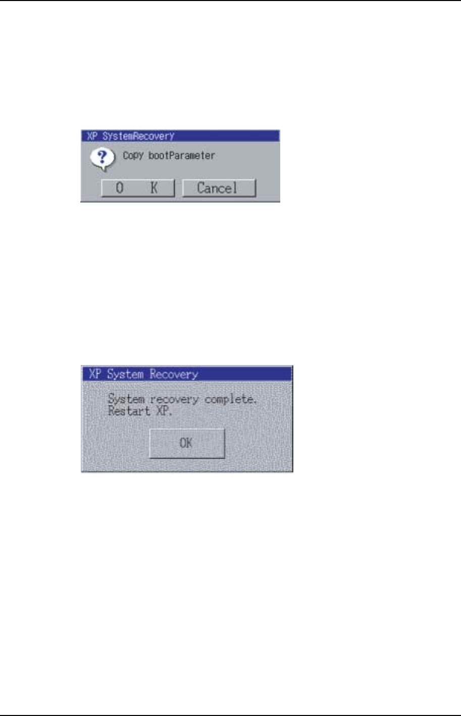 用户备份数据的恢复结束后,显示是否复制启动参数的对话框。