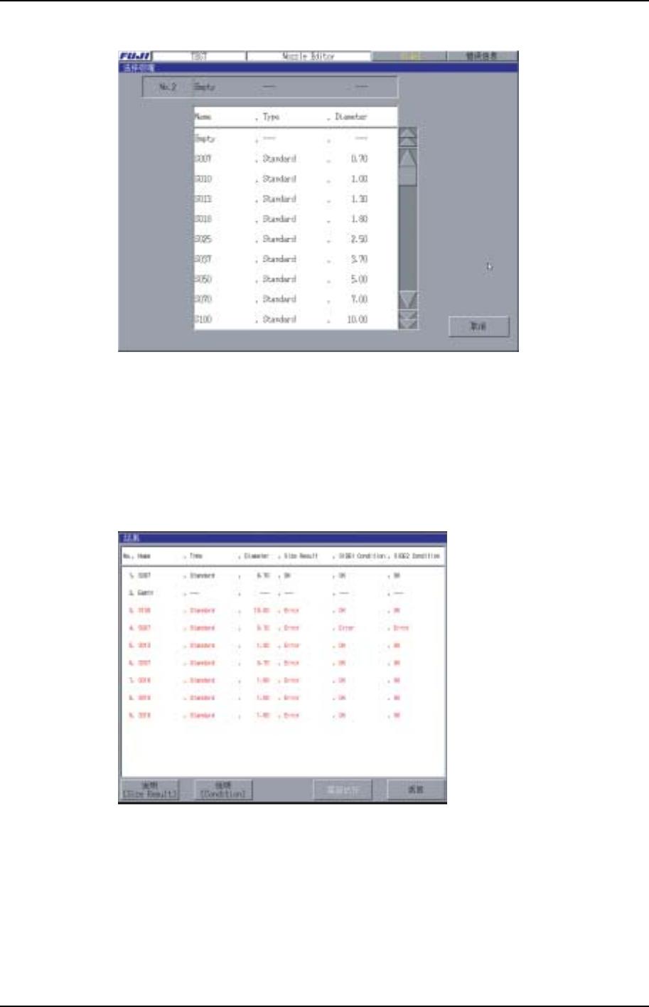 测定结果中出现错误时,请按照[Size Result]、 [Conduction]的说明,确认吸 嘴