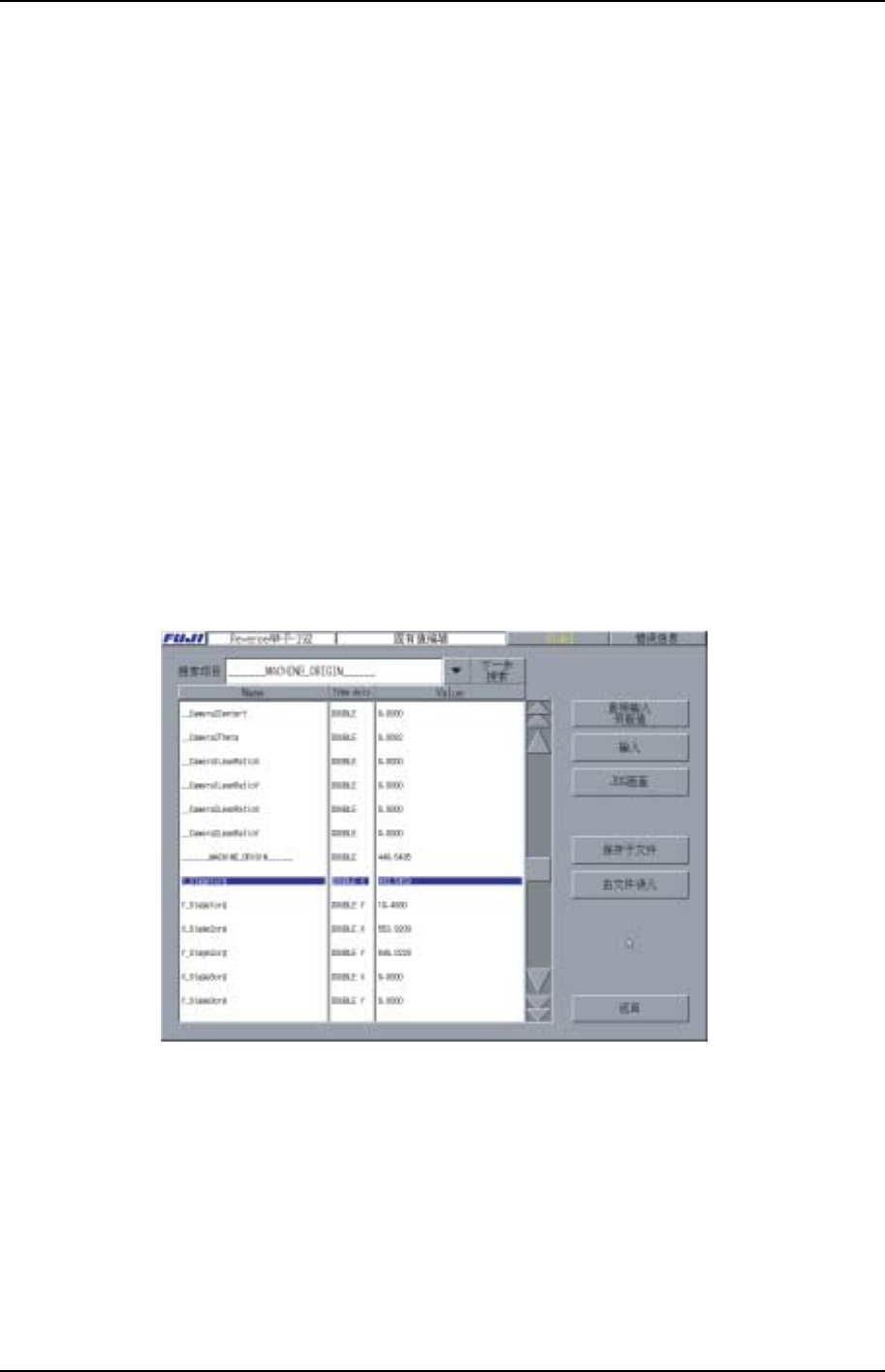 这是固有值编辑画面。没有正确的维修保养知识而变更数据时有可能导致机器的错误运