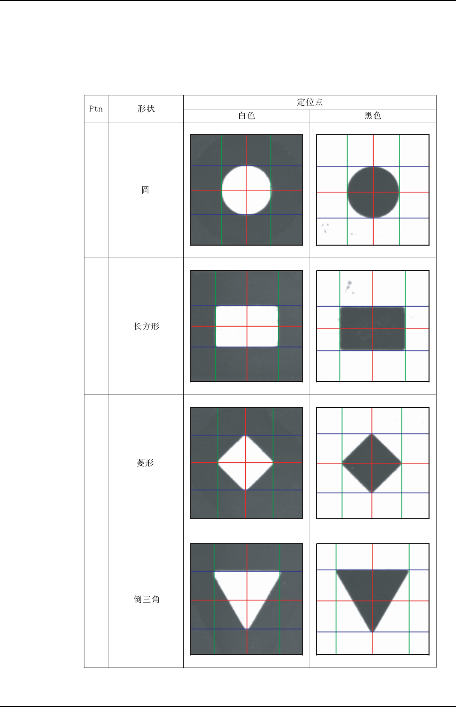 使用鼠标拖动卡尺线,与定位点的外形相吻合设定中心。下面说明各种定位点与卡尺线