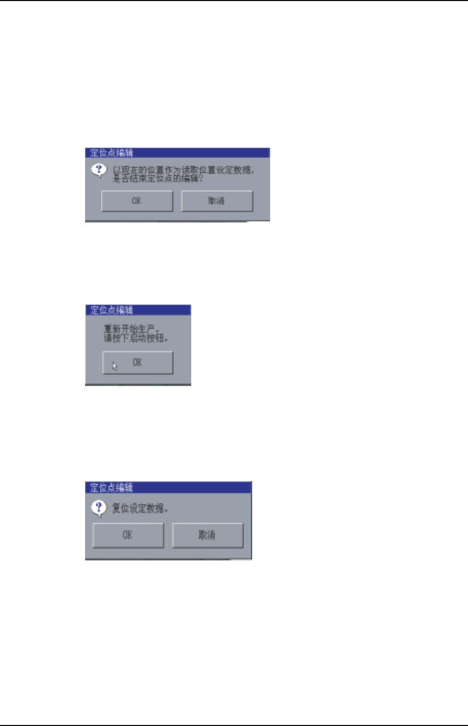 在定位点编辑画面上按下[复位]键,屏幕上将显示出如下的对话框。按下[OK]键,卡尺