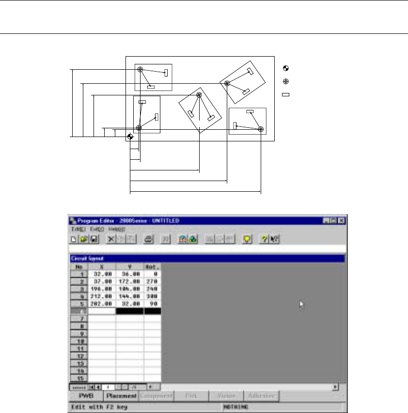 4 – 48 0 ° (165, 0) (320, 240) 180 ° (155, 240) 180 ° ⑥ BOC mk pos ( mark position) No. 1 to No. 3 W hen y ou select "PWB mark used" as the BOC type on the Basic setup window , enter the dist ance fr om the PW …