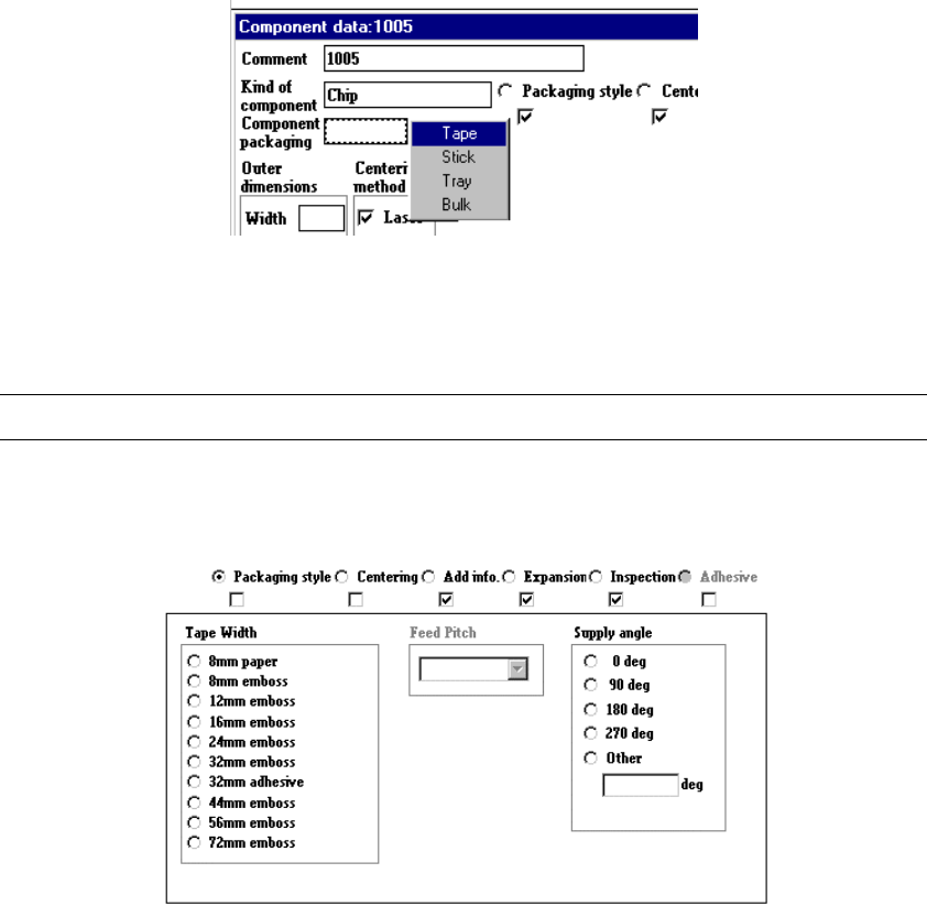 When you select the tape width, feed pitches you can specify for the selected
