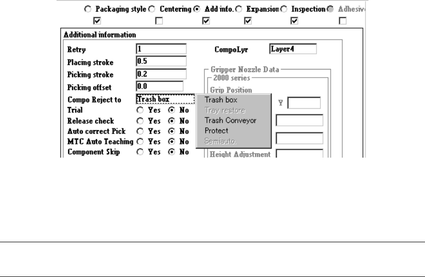 4 – 80 ⑤ Component Specif y where to discard a component. - Trash box: available f or all types of components. - Tray restore: available for com ponents whose packing style is a tray . - Trash convey or: available f or c…