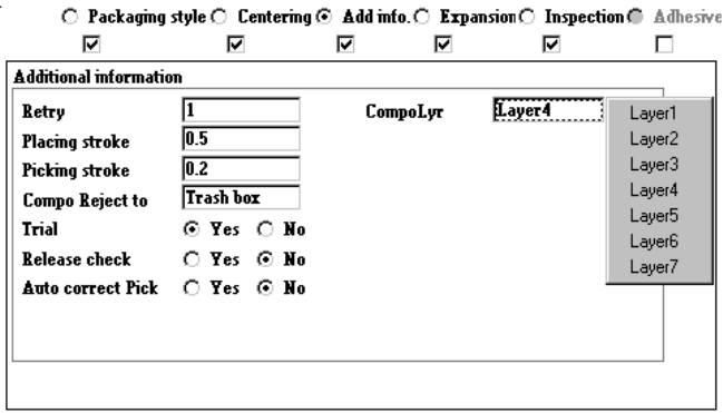 Enter in the edit field the placing stroke for pushing a component from the top of a