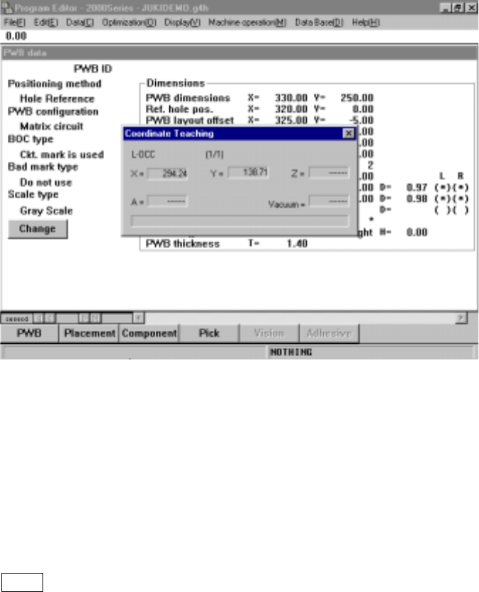 5 − 5 5.3 Teaching Coordinates 5.3.1 Basic operating procedure Coordinates teaching is basically done by the following procedur e. ① M ove the cursor to the desired dat a position. For X- and Y- axes, the coordinates of …