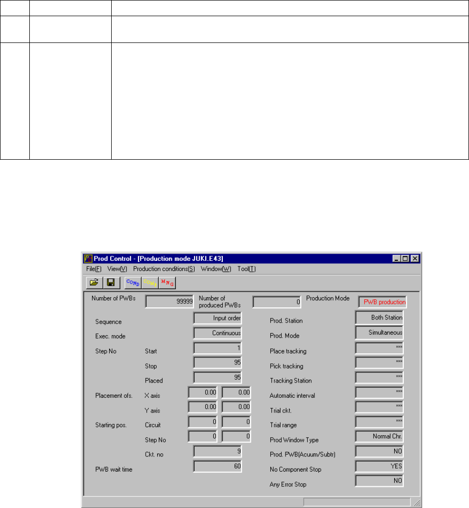 1 Board production mode Determines the number of PWBs on which components are placed, and