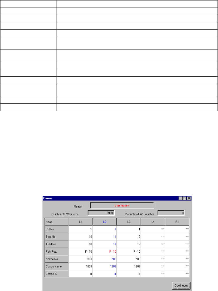 Pick-up position The machine is picking up a component or moving to the component pick-up