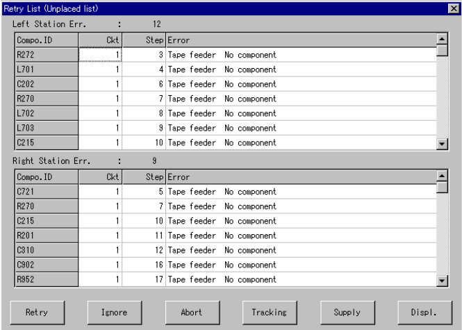 6.3.3.1 Pick point correction using the Retry list (unplace list) dialog