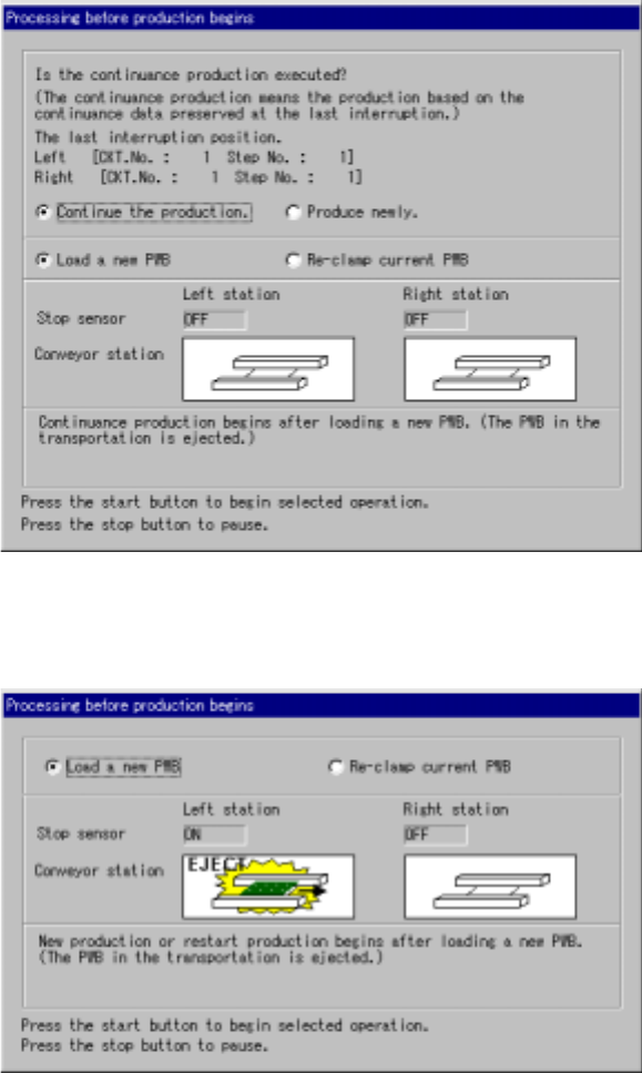 6 − 82 6.4.15.1 Process before production st arts The content s of t he screen displayed as “Processing bef ore product ion begins” dialog box vary depending on the condition: ( a) “if there is a cont inuous production f…