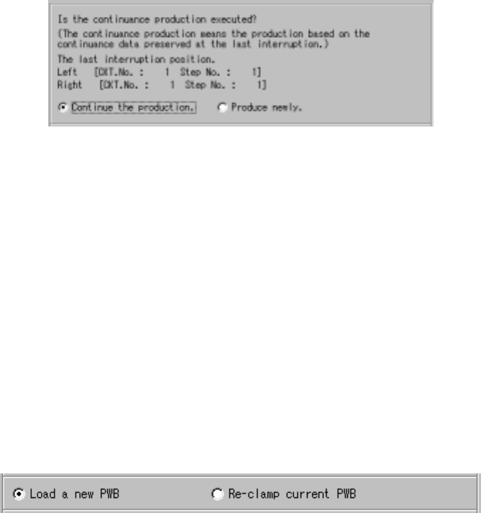 ◇ When you select the radio button “Continue the production.” , the system