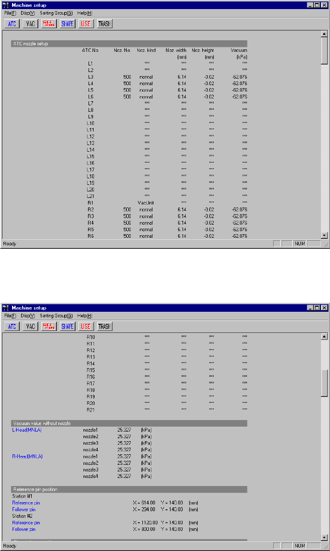 7 − 1 CHA PTER 7 MA CHINE SETUP 7.1 Overv iew T able 7.1.1 shows the item s to be set on the Machine Setup menu. T able 7.1.1 Machine setup items No. Machine setup group Description 1 A TC nozzle setup *1 The A TC number…