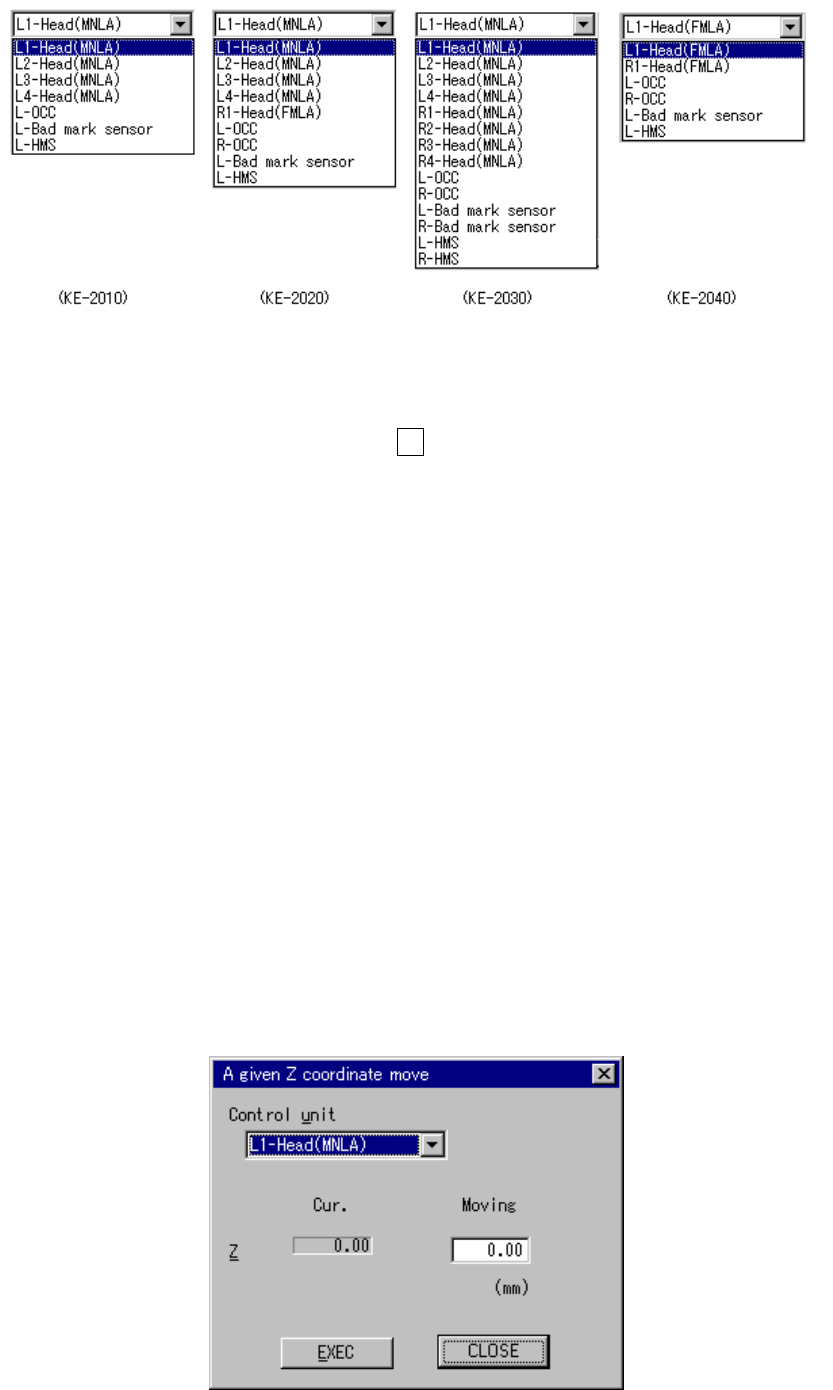 8 − 7 Figure 8.1.7. 1 List of the units that can be controlled by each model W hen you enter the coordinates t o which you w ant the head to m ove, then select the <EXEC> butt on or press the F3 k ey , the head m o…